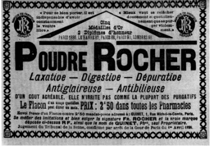 – le laxatif la Poudre Rocher qui va faire sa renommée