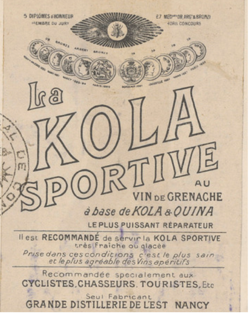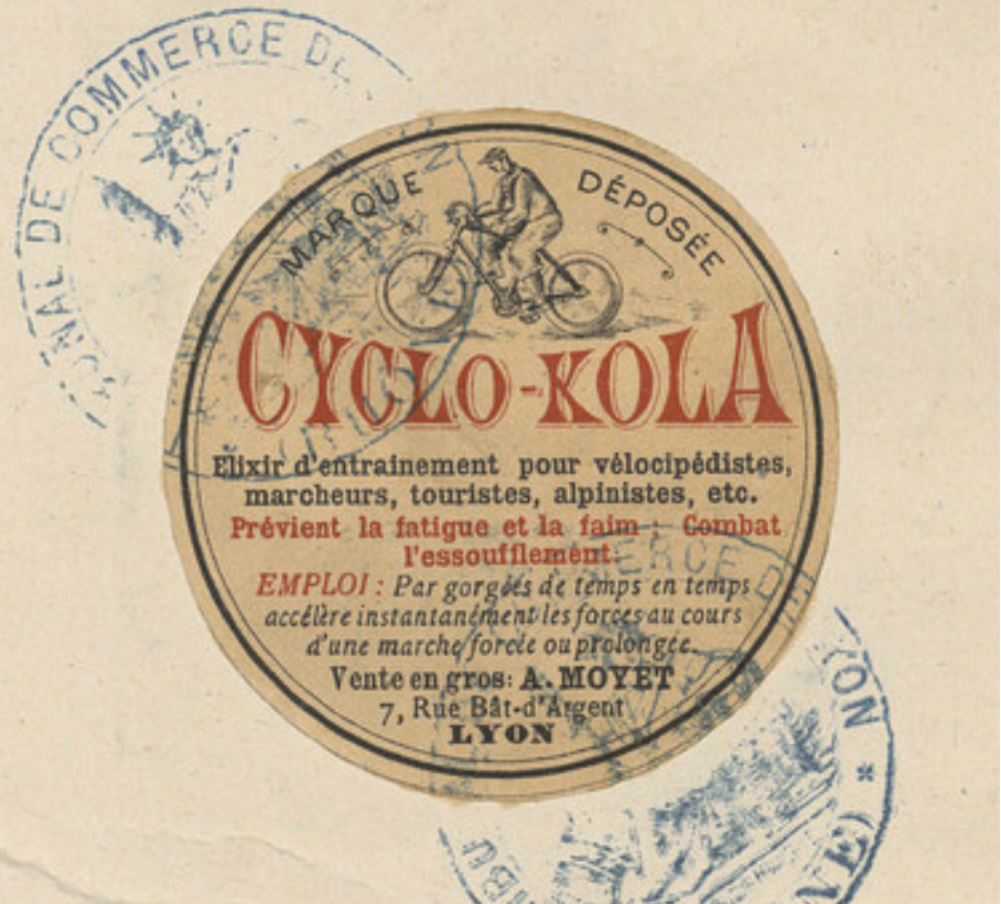 Le XIXe siècle se termine avec la marque « Kola Bicyclette » déposée« par la Pharmacie Centrale de France, par le Quinquina Jacquemin et par le « Rischof Sport » déposé par un distillateur de Limoges, André Delor.